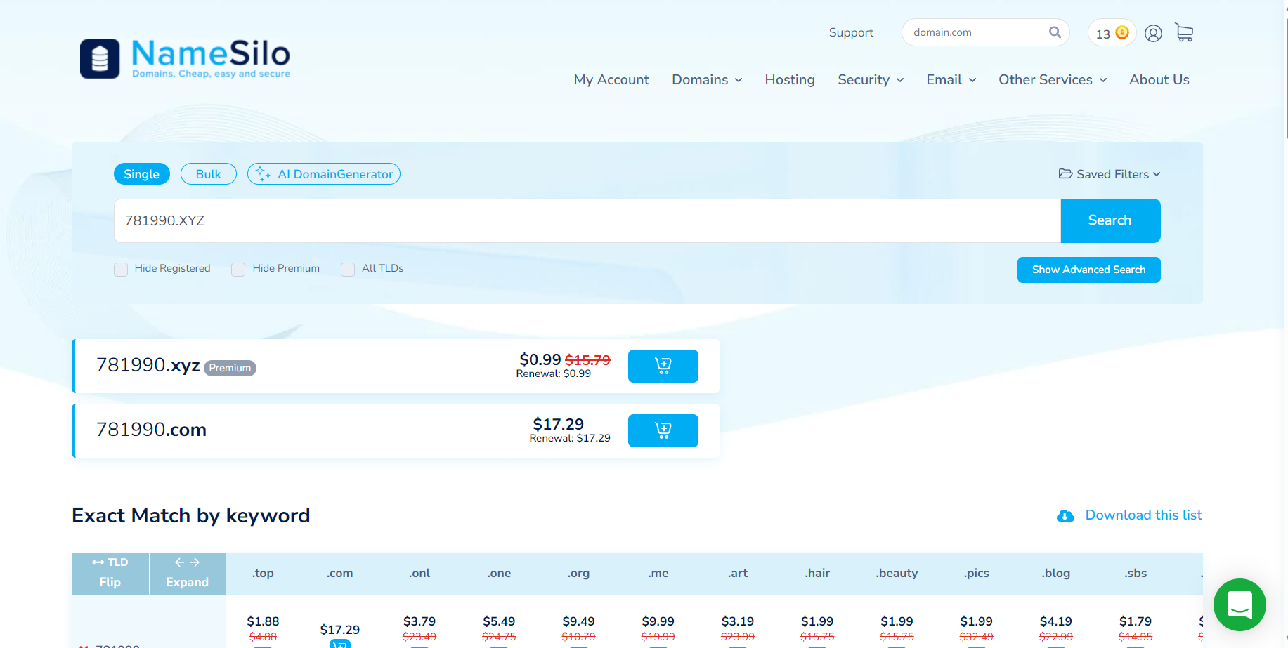 前往Cheap Domain Names & Web Hosting Starting at $0.99! | NameSilo注册账号,如果先前有自己的域名可以直接在Cloudflare当中进行配置,我这里以没有域名为例