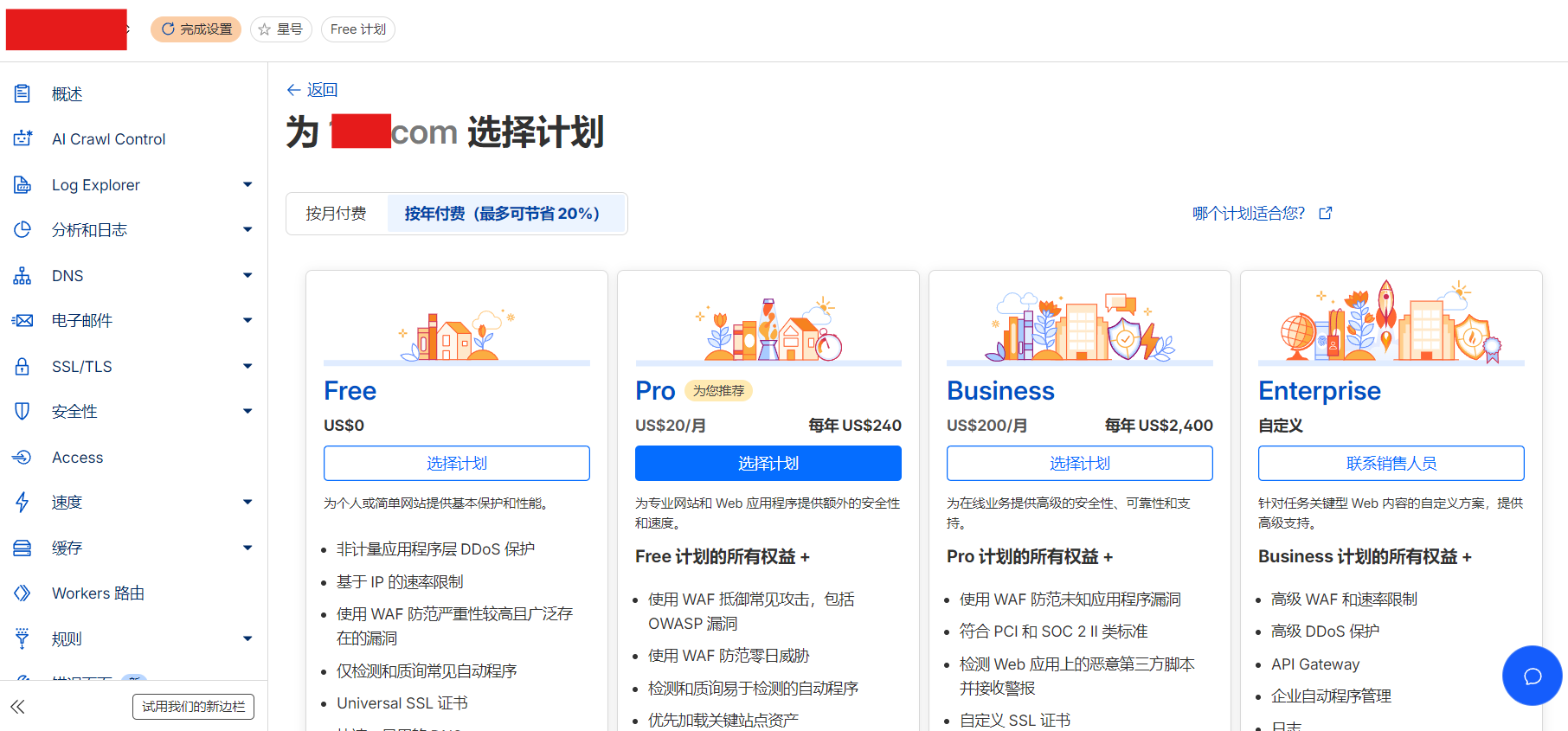 我们选“Free”计划。